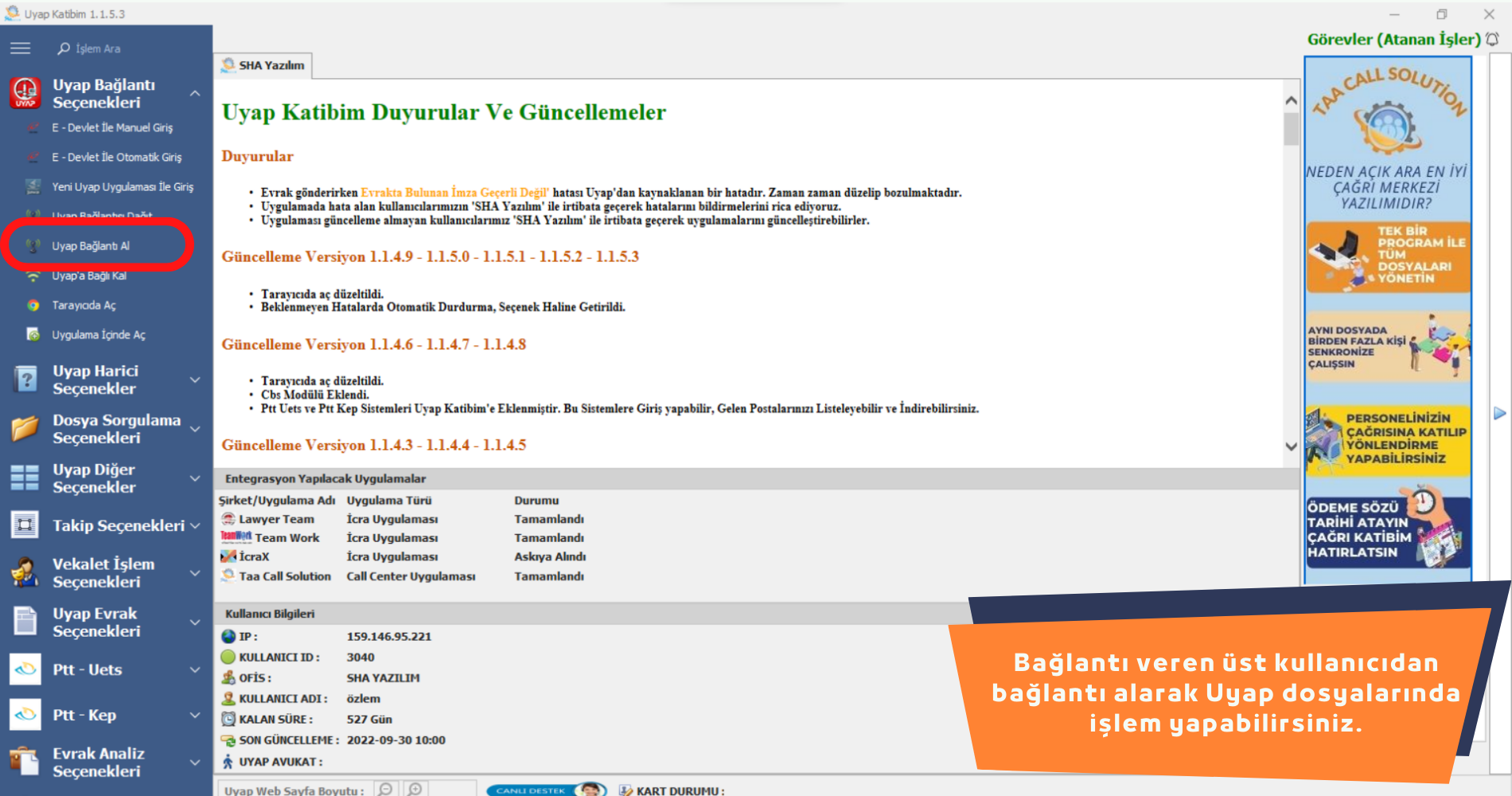 • UYAP bağlantısını alt kullanıcılarınıza dağıtabilirsiniz,